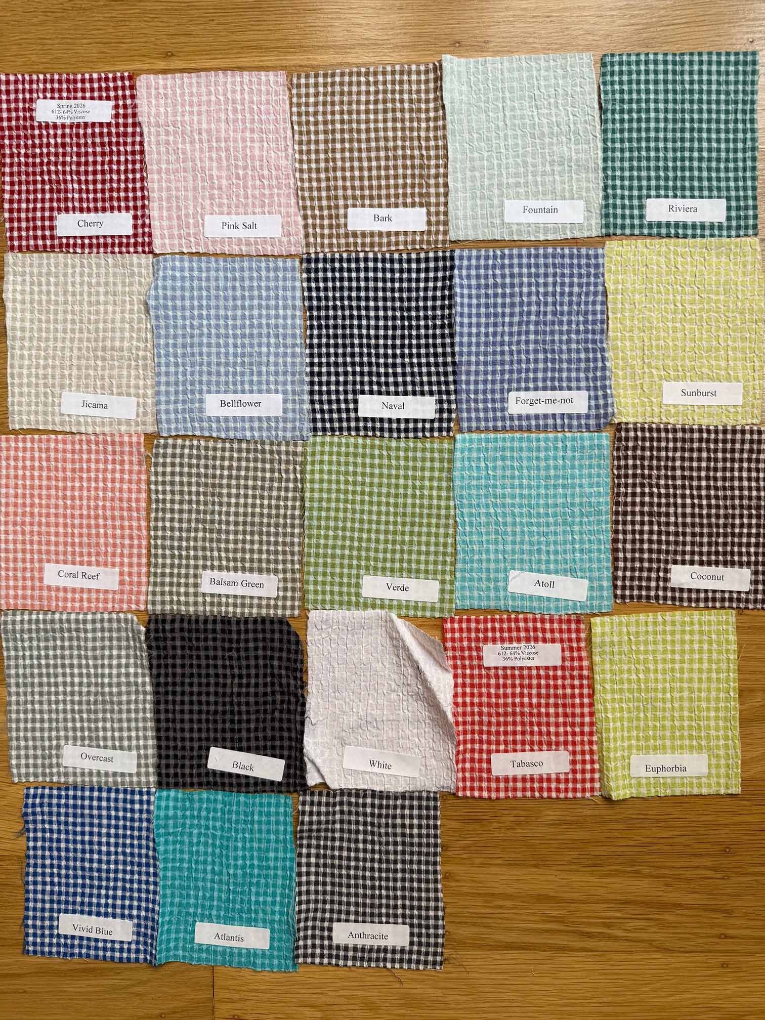 Anthracite, Atlantis, Atoll, Balsam Green, Bark, Bellflower, Black, Chery, Coconut, Coral Reef, Euphorbia, Forget Me Not, Fountain, Jicama, Naval, Overcast, Pink Salt, Riviera, Sunburst, Tobasco, Verde, Vivid Blue, White