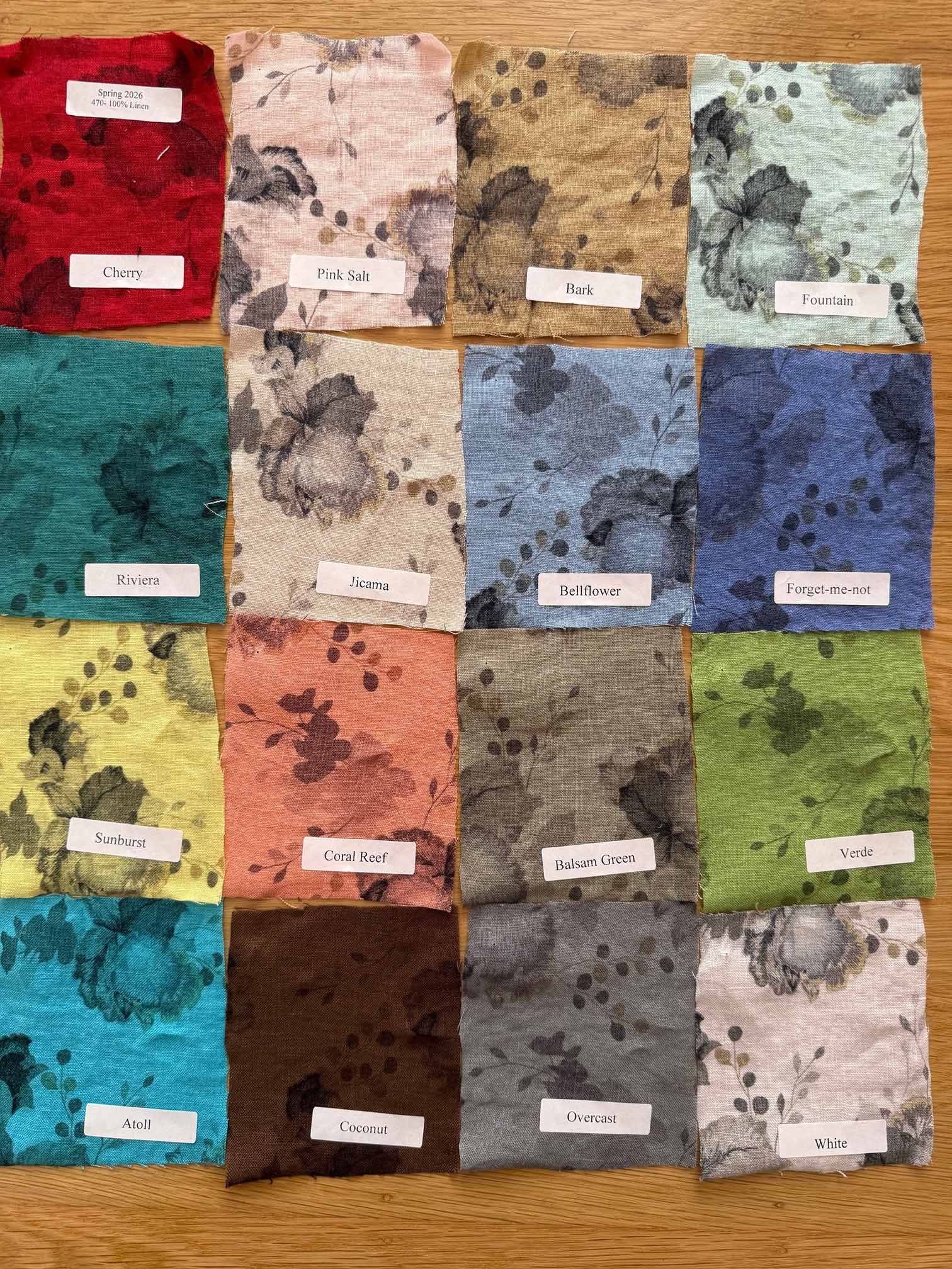 | Leoni Floral Print | Atoll, Balsam Green, Bark, Bellflower, Cherry, Coconut, Coral Reef, Forget Me Not, Fountain, Jicama, Overcast, Pink Salt, Riviera, Sunburst, Verde, White |