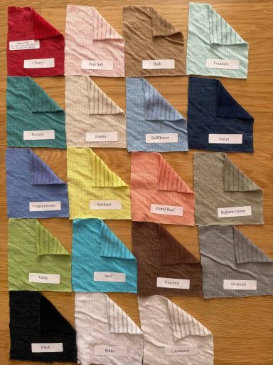 | Grey Stripe Doublecloth | Atoll, Balsam Green, Bark, Bellflower, Black, Cherry, Coconut, Coral Reef, Forget Me Not, Fountain, Jicama, Laundered, Naval, Overcast, Pink Salt, Riviera, Sunburst, Verde, White |