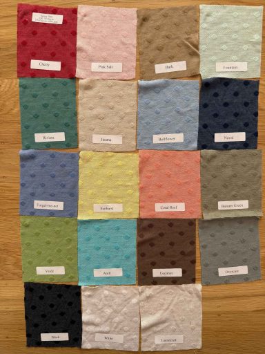 | Mesh Dot | Atoll, Balsam Green, Bark, Bellflower, Black, Cherry, Coconut, Coral Reef, Forget Me Not, Fountain, Jicama, Laundered, Naval, Overcast, Pink Salt, Riviera, Sunburst, Verde, White |