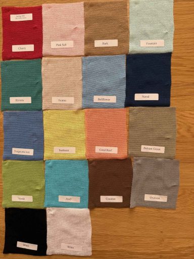 | Tulle | Atoll, Balsam Green, Bark, Bellflower, Black, Cherry, Coconut, Coral Reef, Forget Me Not, Fountain, Jicama, Naval, Overcast, Pink Salt, Riviera, Sunburst, Verde, White |