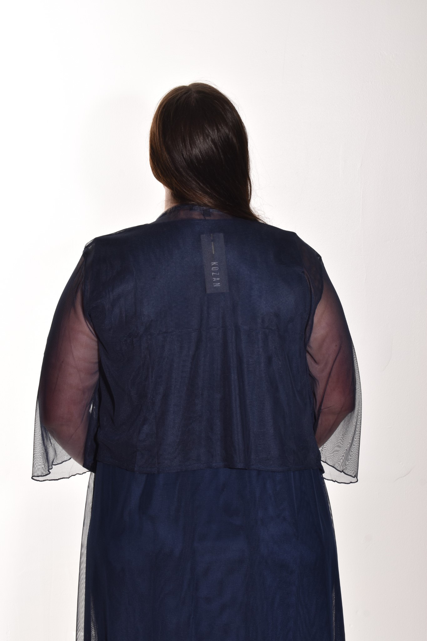 This versatile cropped mesh cardy has a cascading open front and 3/4 length sleeves with a subtle flare. Pair her with style, #LI-1535, The Antonio Dress for an elegant ensemble that will take you to any special occasion.