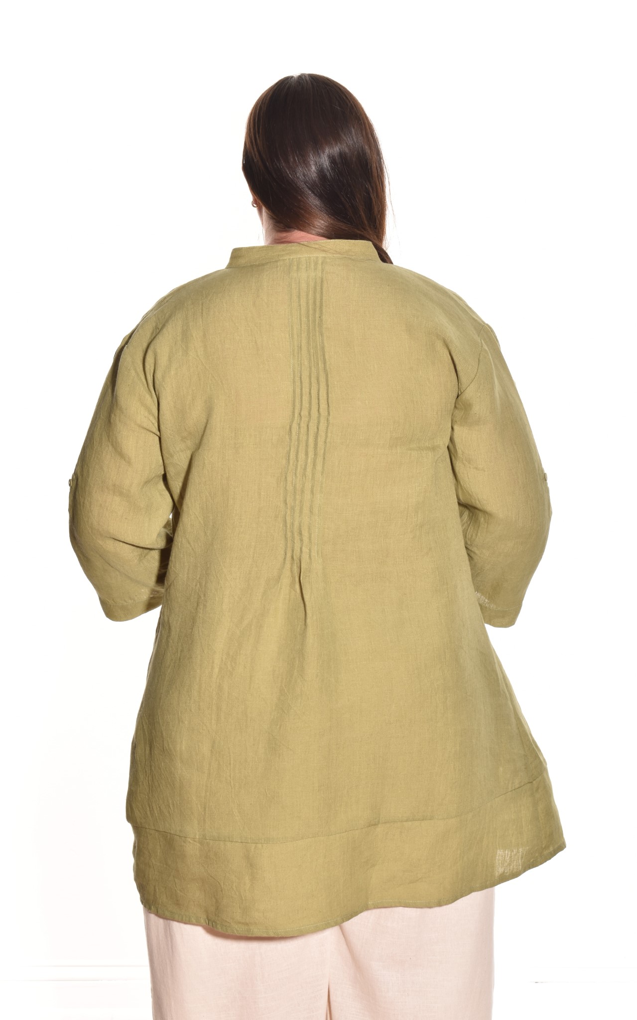 The Pintuck Tunic is certain to become a favorite in your wardrobe. This figure flattering silhouette features front and back pintucks and a V-neckline, 3/4 length sleeves with button tab. A deep hem elevates this timeless style. She offers endless options, wear with leggings, as a beach cover up, over flowing palazzo’s, or if you dare, show your legs and wear as a dress. Emily is wearing a large in the image. This tunic runs generous, size down for a less voluminous fit.