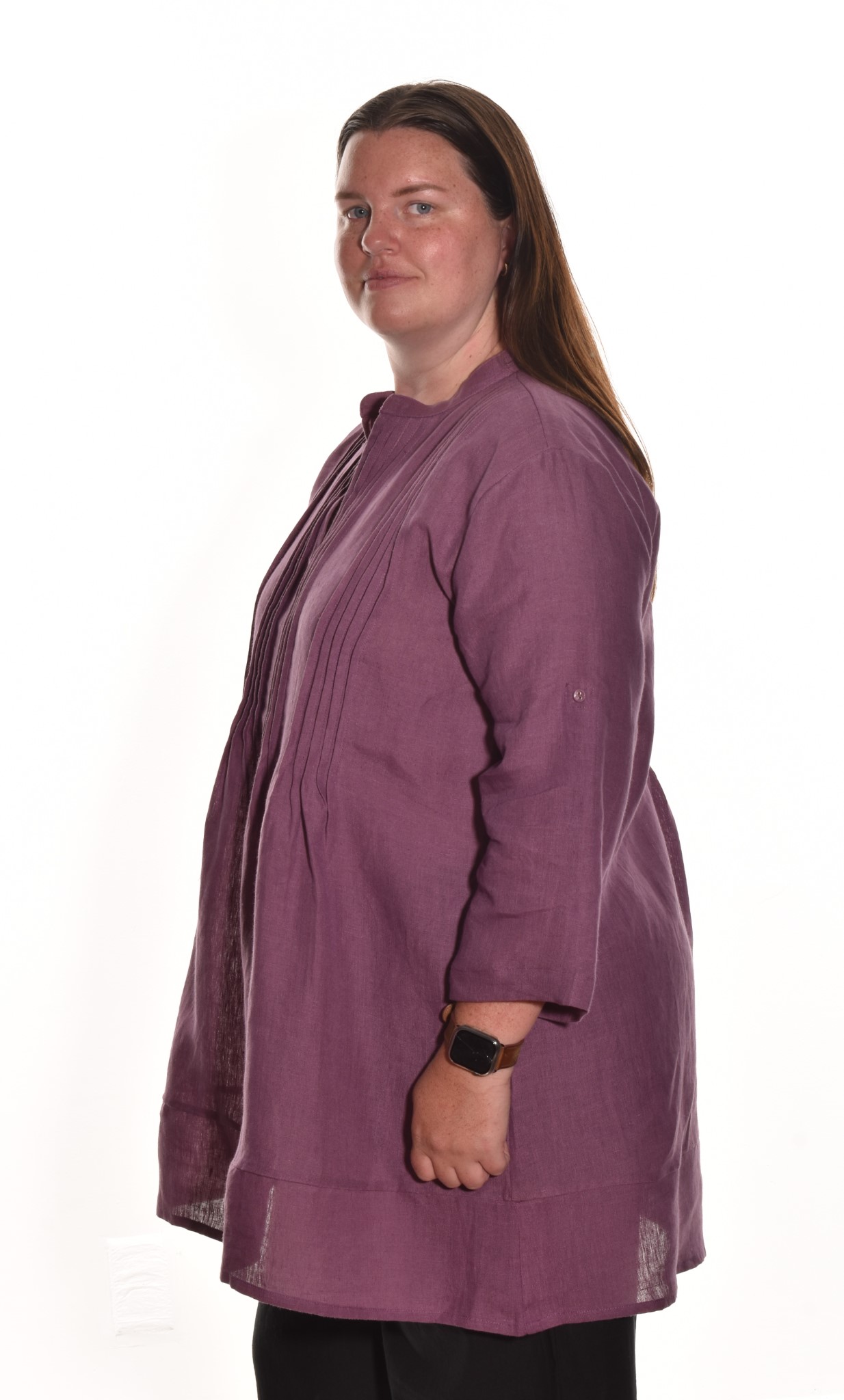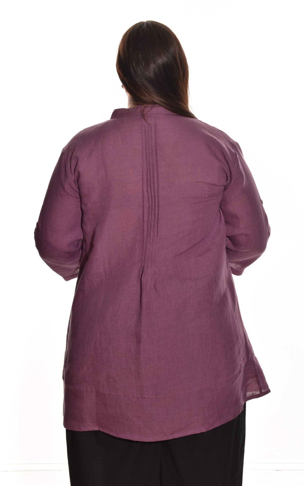 The Pintuck Tunic is certain to become a favorite in your wardrobe. This figure flattering silhouette features front and back pintucks and a V-neckline, 3/4 length sleeves with button tab. A deep hem elevates this timeless style. She offers endless options, wear with leggings, as a beach cover up, over flowing palazzo’s, or if you dare, show your legs and wear as a dress. Emily is wearing a large in the image. This tunic runs generous, size down for a less voluminous fit.
